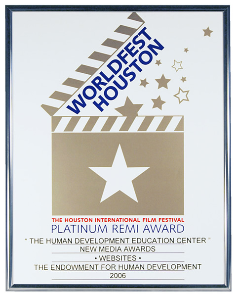 April 29, 2006 -- EHD won the Platinum Remi Award, placing third in the New Media Division of the 2006 Houston International Film Festival.