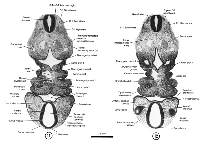 - Central nervous system of the 5-mm embryo. Arrows indicate the position of the cephalic and cervical flexures.