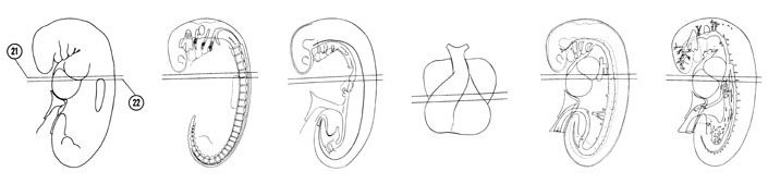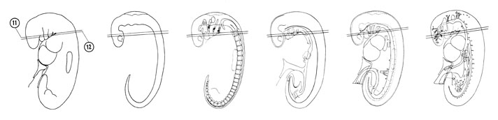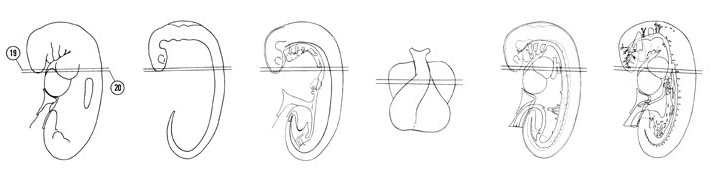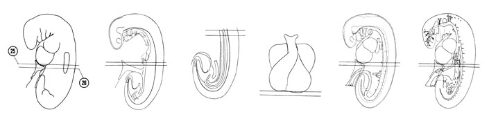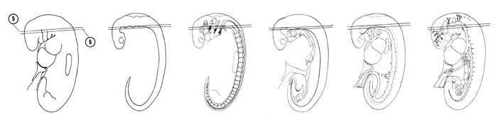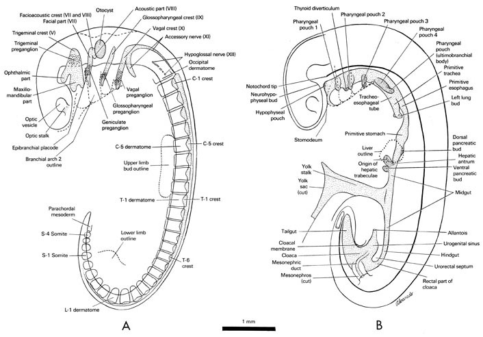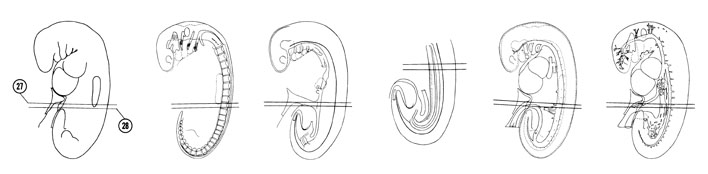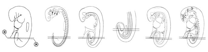 Fig. 5–1AThe specimens measure approximately 4 to 8 mm in length and have up to 42 to 44 pairs of somites.