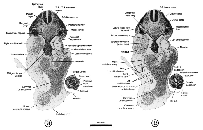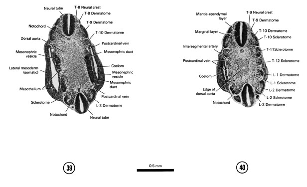 A section through the T-8 neural crest, L-3 dermatome and caudal part of the coelom.