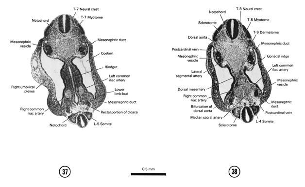 A section through the T-7 neural crest, L-5 somite and junction of the hindgut with the rectal portion of the cloaca.