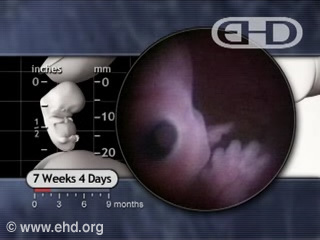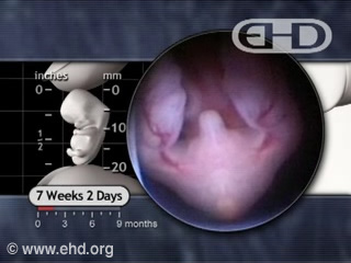 By 7 weeks, the ovaries appear in the female embryo.16 In the male embryo, a gene on the Y-chromosome produces a substance causing the testes to begin to differentiate.17