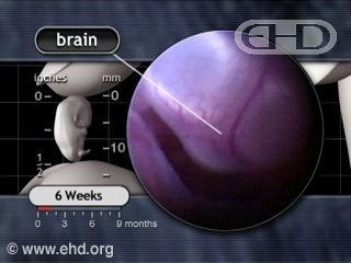 From 6 to 6½ weeks, the cerebral vesicles will double in size.1 Individualized brainwaves recorded via electroencephalogram (e-lek’tro-en-sef’a-lo-gram), or EEG, have been reported as early as 6 weeks, 2 days.2