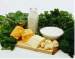 Dairy products and many dark green veggies (such as spinach) are high in calcium which helps build bones providing the shape and structure of our body.