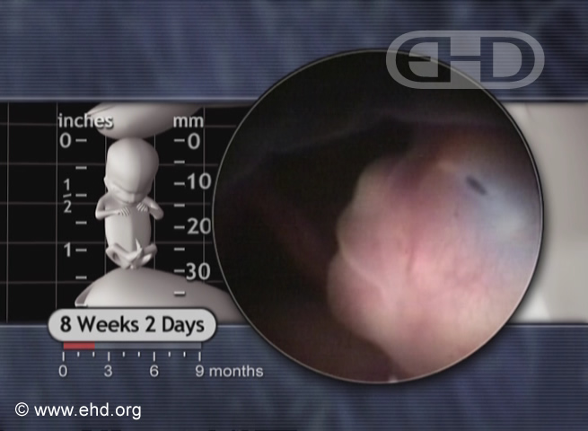 At eight weeks of development, the nose extends further right-to-left than front-to-back.