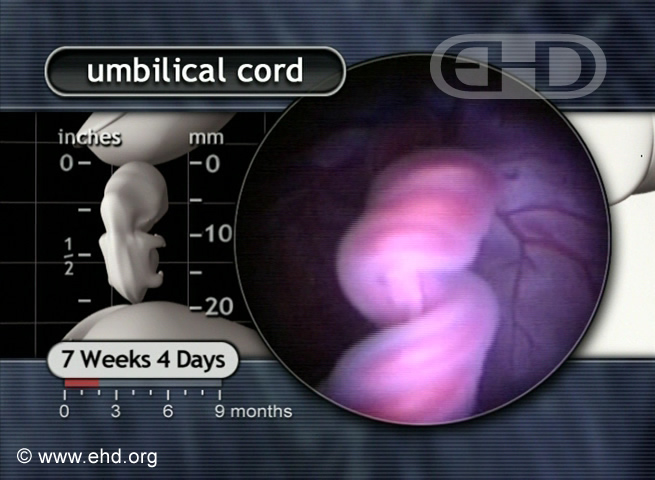 Note the brighter red color of the umbilical vein, reflecting its cargo of oxygenated blood that is returning from the placenta.