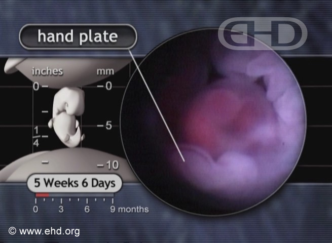 Note:Don't let the beating heart in the accompanying clip distract you from seeing all the other body parts. There's a lot going on everywhere you look!Label Key:1. heart chambers 2. chest and abdominal walls 3. liver 4. marginal vein of left upper hand 5. left wrist 6. pharyngeal arches 7. left upper limb | ||