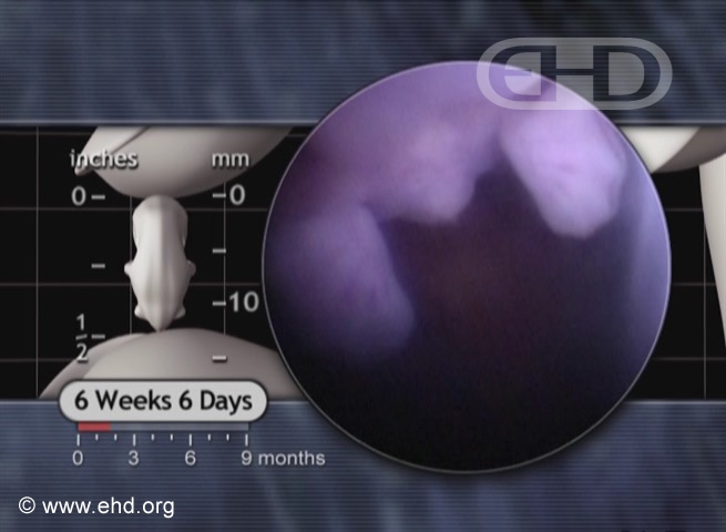 Note:Development of the feet and toes lag behind that of the hands and fingers by just a few days. Notching between the tips of the toes is now underway.Label Key:1. left foot 2. digital rays 3. notching 4. genital tubercle 5. right foot | ||