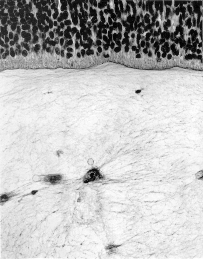 Vitreous body. Indications of the secondary or definitive vitreous body are present adjacent to the internal limiting membrane of the retina.