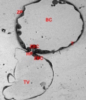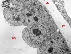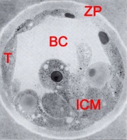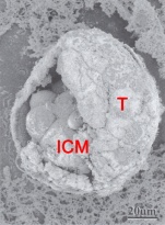 Expanded embryo showing details of mitochondria within a trophoblast cell