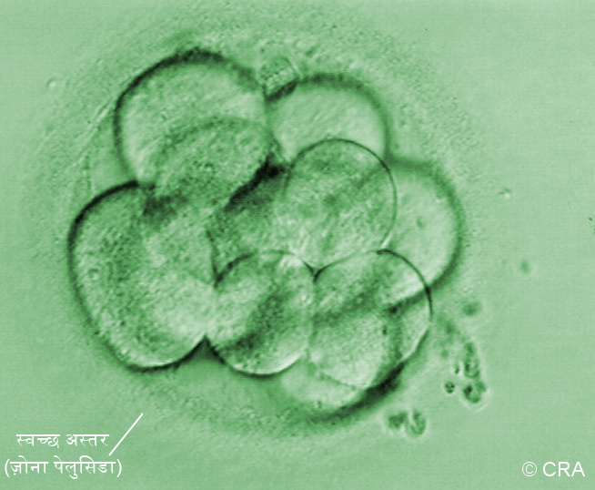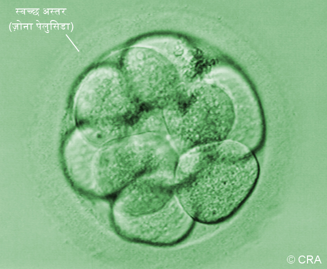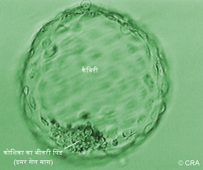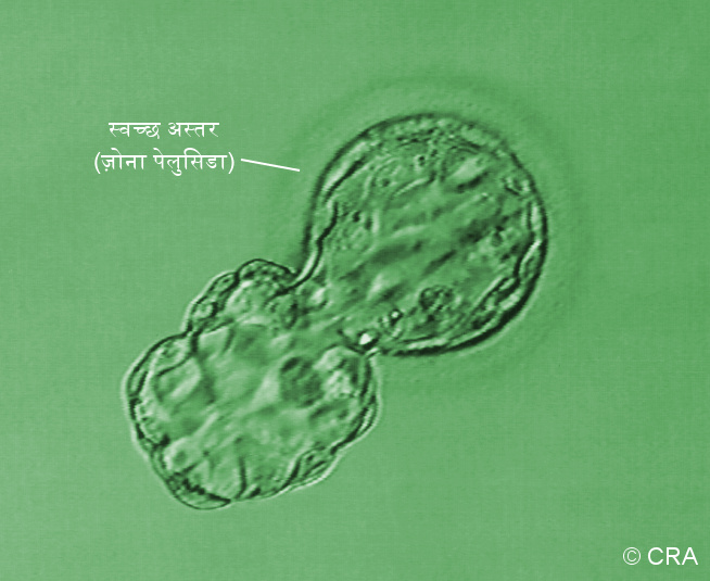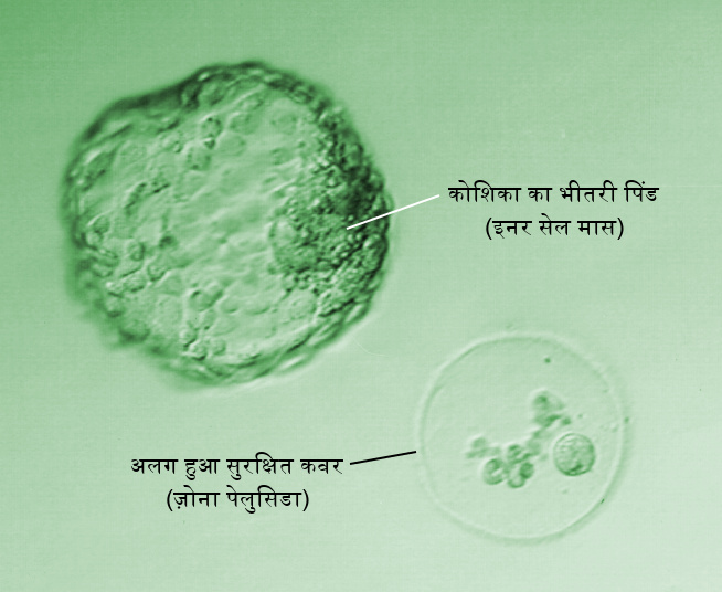 For normal development to proceed, the blastocyst must escape its protective coating. When viewed under the microscope, this process is called "hatching." The protective coating of the human embryo developing naturally inside the womb is believed to break down and fall apart, rather than "hatch" as seen here.