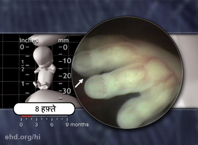 FROM THE SCRIPT: “By 7½ weeks, the baby’s fingers are separate. His hands begin to touch in the midline... as do his feet.”46